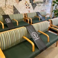 一定の距離を保つことを一目で分かりやすく示すことができる「ソーシャルディスタンスカバー」は、柔軟な開発力を発揮して開発された商品だ。利用する人が安心して過ごすことができる快適な空間づくりを可能にした。